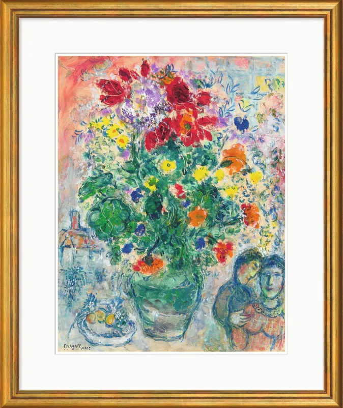 Für Picasso war er – in der Nachfolge Renoirs – der unbestrittene Meister der Farben. Ein großer Erzähler war er zudem: Marc Chagalls Werk, mit seiner häufig aus seinen Wurzeln im dörflichen osteuropäischen Judentum gespeisten Bilderwelt, erzählt Geschichten und spricht die Emotionen des Betrachters unmittelbar an. Das »Bouquet de Renoncules«, zu Deutsch etwa »Hahnenfußstrauß« aus dem Jahr 1968 gilt als Liebeserklärung des Künstlers an seine zweite Ehefrau Valentina Brodsky. Bauernhaus und Fruchtkorb zur Linken verweisen auf seine Heimat Witebsk im heutigen Belarus, und es ist wohl auch bezeichnend, dass Chagall die ikonographisch naheliegende rote Rose durch einen Blütenkranz des gelben Hahnenfußes umfassen lässt – die titelgebende Blume kommt in vielen Bauerngärten vor.