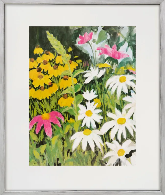 Bringen Sie die faszinierende Schönheit eines blühenden Gartens in Ihr Zuhause mit dem Bild »Nolde Garten III« von Eleonore Baur-Brinkman. Diese hochwertige Edition auf Papier vereint lebendige Farben und ausdrucksstarke Formen, die den Zauber der Natur einfangen. Die silberfarbene Massivholzleiste sorgt für eine elegante Rahmung, während das Verglasen das Kunstwerk schützt und seine Wirkung unterstreicht.