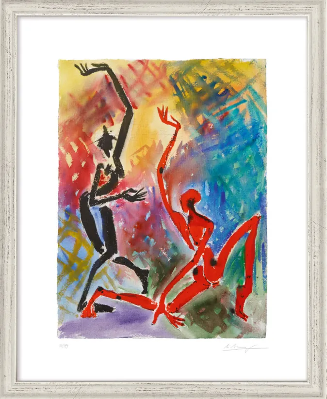 Die vier eindrucksvollen Werke von Helge Leiberg – »Tanz mit mir«, »Jazz Dance«, »Contemporary« und »Tango« – fangen die dynamische Schönheit des Tanzes in ausdrucksstarken Farben und Formen ein. Jedes Bild erzählt auf seine eigene Weise von Bewegung, Rhythmus und Leidenschaft.