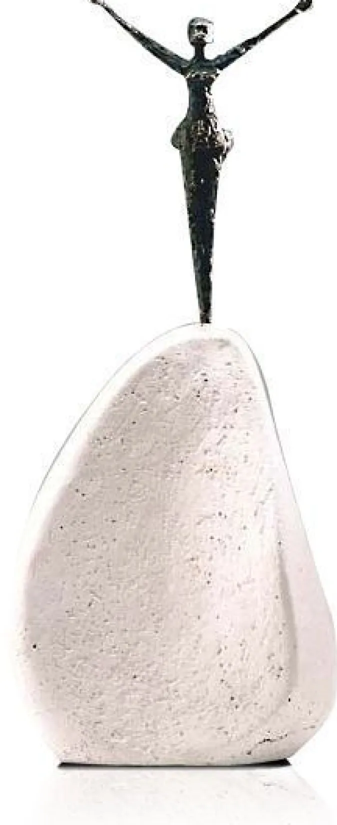 Kleinplastik aus feiner Bronze. Gegossen im Schleuder-Schmuckguss-Verfahren, versäubert, patiniert und gewachst. Auf einem Formsockel aus Steingussmaterial.