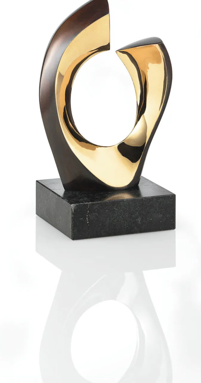 Skulptur in feiner Bronze, patiniert und poliert. Von Hand gegossen im Wachsausschmelzverfahren. Auf einem Sockel aus schwarzem Marmor.