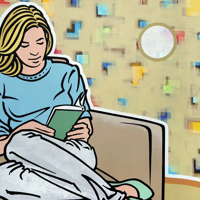 Das Bild »Lesende« von Ralf Schmidt (2021) fängt die besondere Magie des Lesens ein. Es zeigt diesen einzigartigen Moment, in dem man beim Lesen völlig in eine andere Welt eintaucht und doch ganz bei sich selbst bleibt.