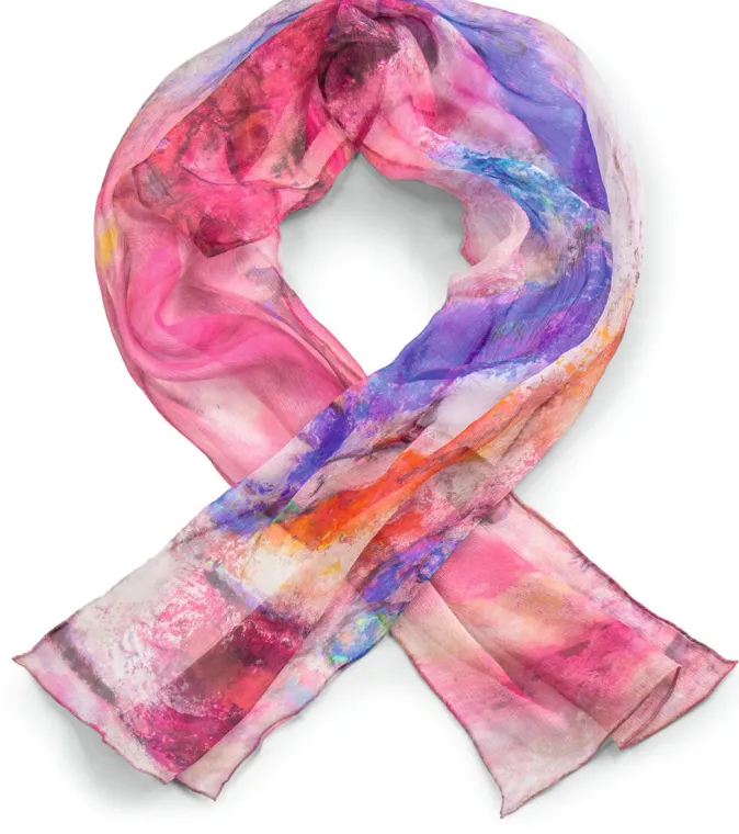 Die raffinierten Details aus Marc Chagalls Werken zu dem alttestamentarischen »Hohelied Salomos« kommen auf diesem feinen Schal aus 100% Seide besonders gut zur Geltung.