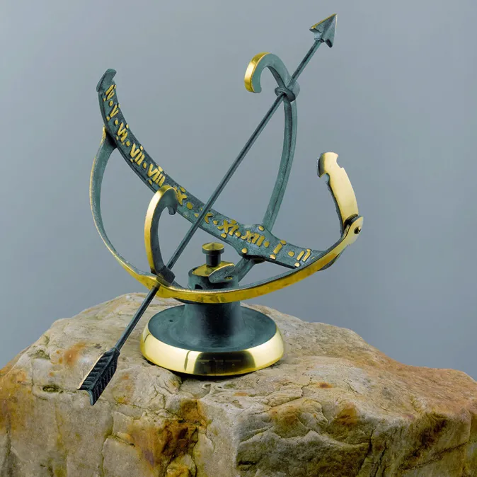 Der Pfeil von Robin Hood weist die Zeit in diesem Entwurf aus einer britischen Gartenanlage.