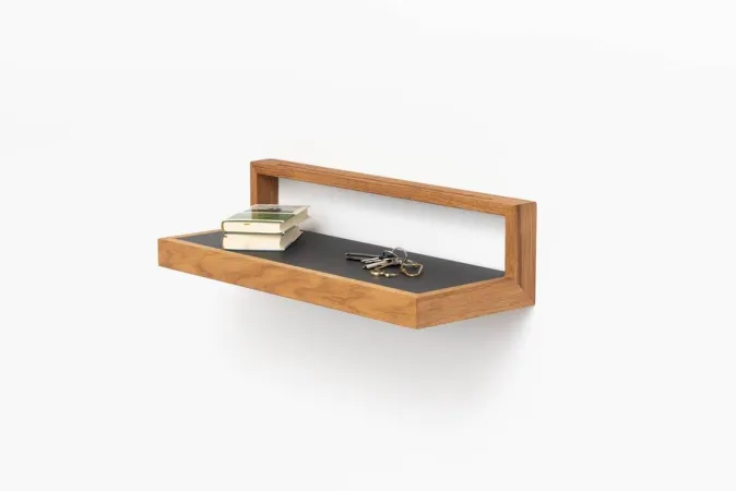 Das Ablagebord »buck« ist ein schlankes, schlichtes, leichtes Möbel, das es in drei Varianten gibt. Durch eine verdeckte Aluminiumleiste ist es an der Wand befestigt – wobei die Höhe natürlich frei wählbar ist. Das macht den buck flexibel für die Nutzung in Flur, Wohnzimmer, Kinderzimmer, Herrenzimmer, Salon oder, oder, oder. Als Ablage, Nachttisch oder kleines Schreibpult. In drei Größen erhältlich.