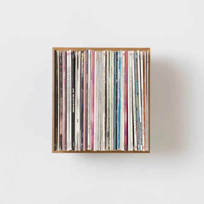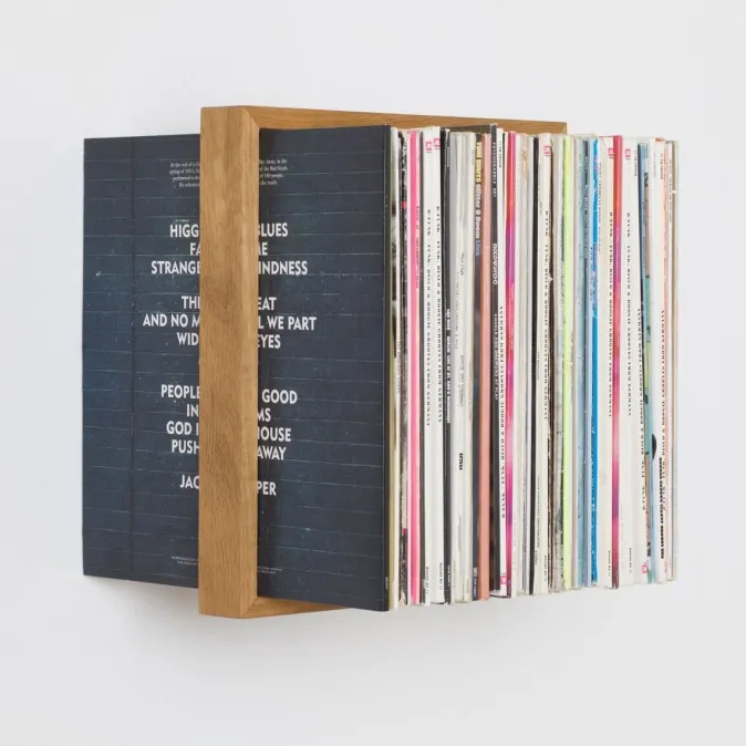 Das Schallplatten-Regal »b-platte« bietet ausreichend Platz für über 50 Schallplatten Ihrer Wahl und setzt sie wirkungsvoll in Szene. Hier schweben sie gut sortiert und immer griffbereit. Der massive Holzrahmen scheint mit den Schallplatten zu schweben, doch in Wirklichkeit halten die eingelassenen Edelstahlwinkel, die zwischen den Plattenhüllen verschwinden, die Konstruktion an der Wand. Zeitlos, individuell und in Deutschland gefertigt.