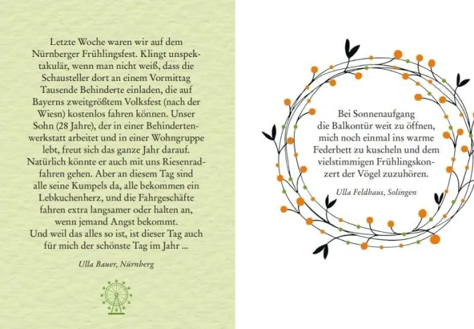 - Aus der ZEIT-Rubrik »Was mein Leben reicher macht« zum Thema Glück & Lebensfreude
