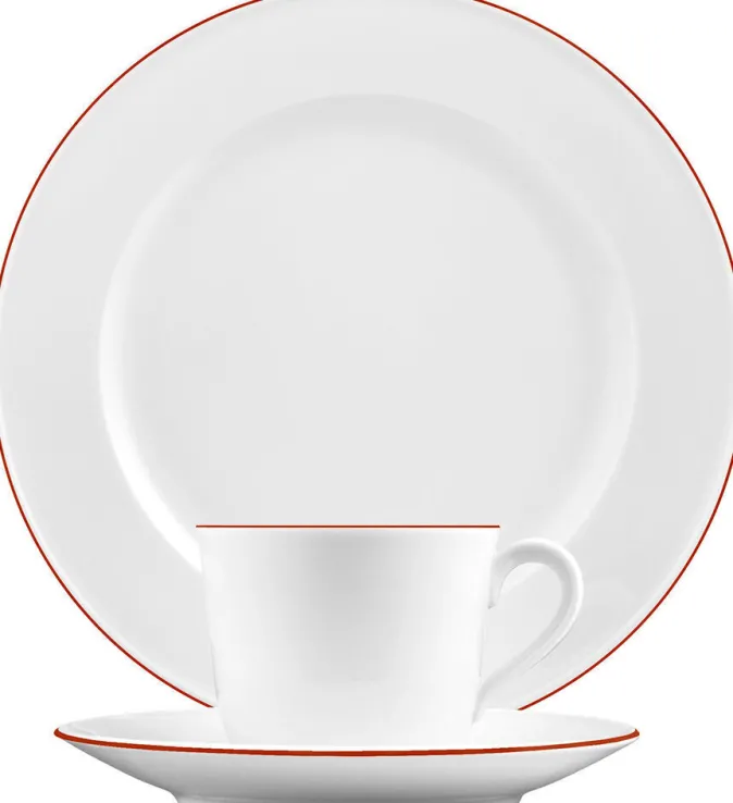 Das Service »Wagenfeld 639« vereint ein dreiteiliges Kaffeeservice mit Kuchenteller, Ober- und Untertasse zu einem einzigartigen Arrangement gehobener Tafelkultur. Klare Silhouetten und sachliche Funktionalität weisen jedes einzelne Stück als ein Meisterwerk bauhäuslerischer Formensprache aus. Inspiriert von der Farbenlehre Johannes Ittens zieren dezente farbige Linien die Konturen des reinweißen Manufakturporzellans und verleihen ihm einen exklusiven Charakter mit Sammlerwert.