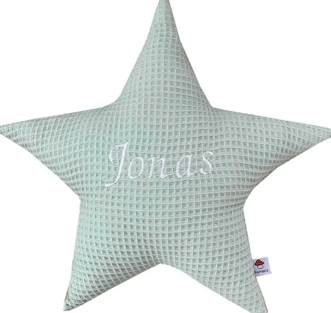 Schenken Sie Ihrem Kind mit dem personalisierbaren Sternkissen einen kuscheligen Freund für alle Lebenslagen. Ob als Kuschelfreund oder Begleiter in dunklen Nächten, dieser Seelentröster wird Ihr Kind viele Jahre lang begleiten. Auch als dekorativer Blickfang im Kinderzimmer oder Kinderbett macht dieses süße Kissen, dass es in zwei wunderschönen Pastellfarben gibt, etwas her. Das Kissen Inlett besteht aus Waffelpique und ist durch den auf der Rückseite eingearbeiteten Hotelverschluss separat vom Bezug waschbar. Die Sternkissen sind in liebevoller Handarbeit aus 100% Ökotex zertifizierter Baumwolle hergestellt und somit 100% Allergiker freundlich.