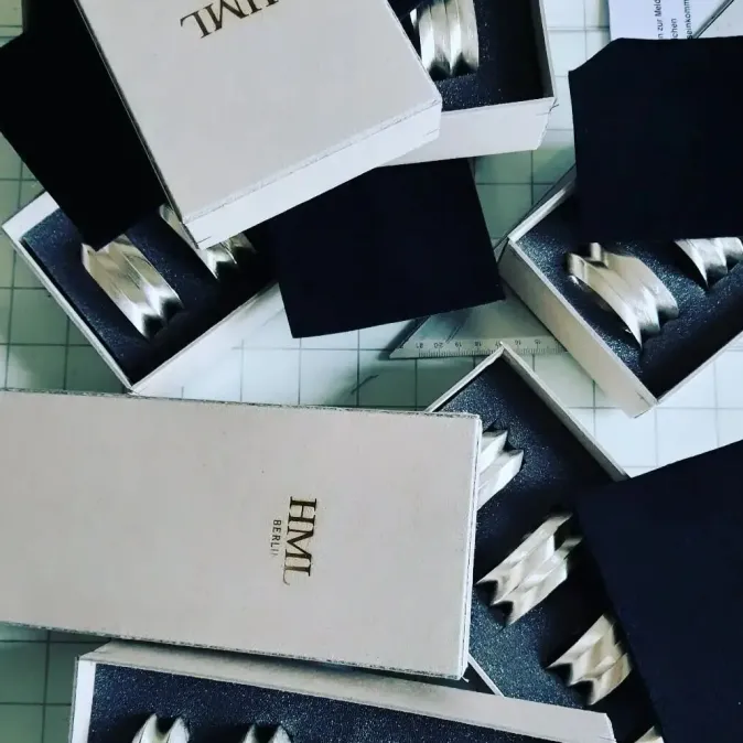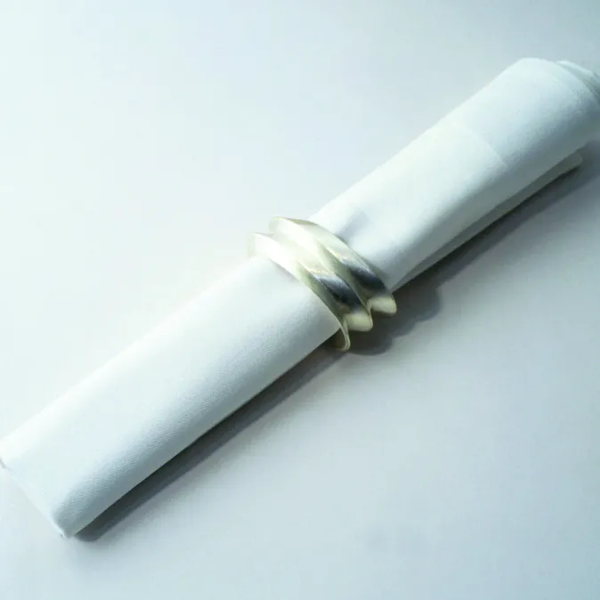 Die Serviettenringe von HML Berlin vereinen in ihrer Gestaltung sanft geschwungene, elliptische Formen, die kunstvoll geschichtet und versetzt sind. Diese besondere Formgebung erinnert an die königlichen Kronen der Antike und spiegelt zugleich die Dynamik der Moderne wider. Als zeitgenössische Klassiker anerkannt, hat es die gesamte Serie TISCHMANIEREN sogar in die Sammlung des Museum of Modern Art geschafft – ein Zeichen für ihre zeitlose Schönheit und ihren hohen künstlerischen Anspruch.