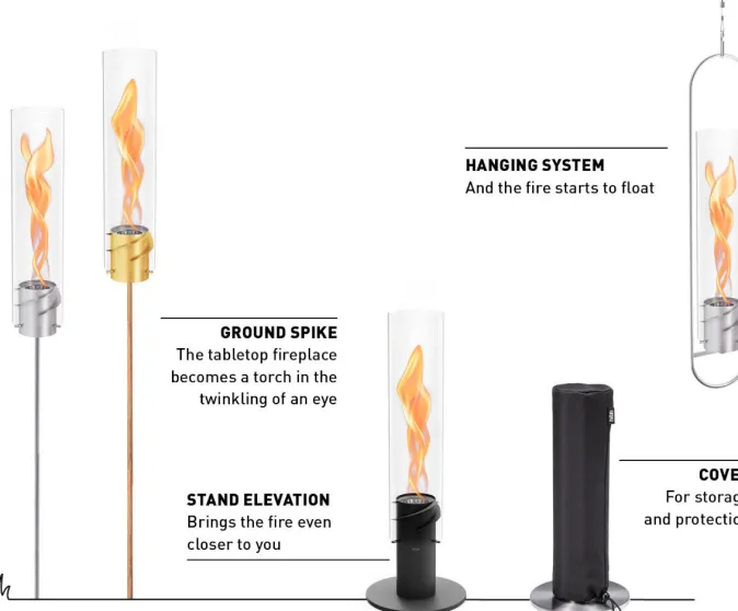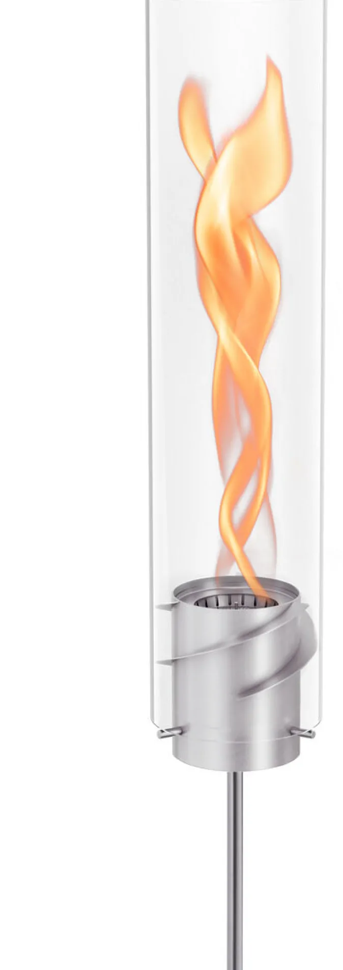 Mit dem Erdspieß als Zubehör verwandelt sich SPIN im Handumdrehen in eine Gartenfackel. Einfach in den Rasen, das Beet oder den Blumentopf gesteckt oder auf die Base geschraubt, verzaubert sie die Gäste der nächsten Gartenparty und wird zum Blickfang des Abends.