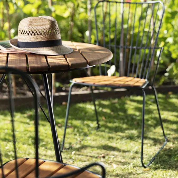 Leicht skandinavisch, aber mit einem Hauch französisch-viktorianischer Romantik kommt unser neue Dining-Chair »Paon« von HOUE daher. Der gemütliche Stuhl für Ihre Terasse oder Balkon wird aus pulverbeschichtetem Stahl und wetterfesten Bambuslamellen hergestellt. Der Sitzkomfort übertrifft alle Erwartungen an einen Metallstuhl und zudem sind sie wunderbar stapelbar uns somit leicht zu verstauen.