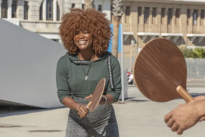 Das in Spanien hergestellte, hochwertige Beachballset ist bekannt für seine Ergonomie und Leichtigkeit. Die Schläger werden in fast allen Fertigungsphasen vollständig aus Holz gefertigt, wodurch umweltfreundliche Qualitätsprodukte entstehen, die Ihre Erwartungen übertreffen. Die Schläger sind leicht zu Pflegen und verfügen über einen Sonnen- und Wasserschutz. Dadurch und aufgrund seines Designs und der Verwendung von nachhaltigen Materialien höchster Qualität, ist der Schläger besonders langlebig.