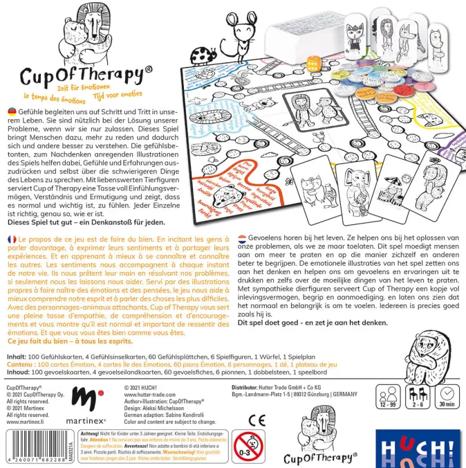 Das Cup-of-Therapy-Konzept wurde von den erfahrenen Psychotherapie-Experten Antti Ervasti und Elina Rehmonen entwickelt und in Zusammenarbeit mit dem international bekannten Illustrator und Grafikdesigner Matti Pikkujämsä verwirklicht. Die Zeichnungen spenden Trost, Ermutigung und ein Lächeln. Mit den Cup-of-Therapy-Produkten sollen heikle und sensible Themen auf eine zugängliche Weise ins Gespräch gebracht werden.