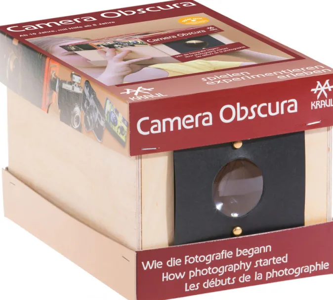 Der Geschichte der Fotografie auf den Spuren. Mit dem Experimentierkasten »Camera Obscura« können die Kinder ihre eigene ursprüngliche „Lochkamera“ nach Jahrhunderte alten Prinzipien bauen und mit verschiedenen Teilen und Tricks spielend verstehen, wie jede moderne Kamera funktioniert.