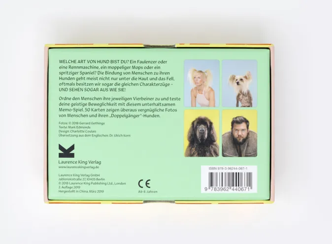 In diesem unterhaltsamen Memo-Spiel müssen Hund und Herrchen oder Frauchen zueinander finden: 50 Karten zeigen lustige Fotos von Hunden und ihren Besitzer*innen und ergänzt wird das Ganze im beiliegenden Booklet von humorvollen Texten zu jedem Paar und zur Psychologie hinter dem Ähnlichkeits-Phänomen von Hunden und ihren Besitzer*innen. Warum sehen Menschen wie ihre Hunde aus? Dieses Spiel erforscht auf witzigste Weise die intensiven Bindungen, die wir zu unseren Hunden entwickeln. Das perfekte Geschenk für Hundefreunde! Unterstützt von Battersea Dogs Home.
