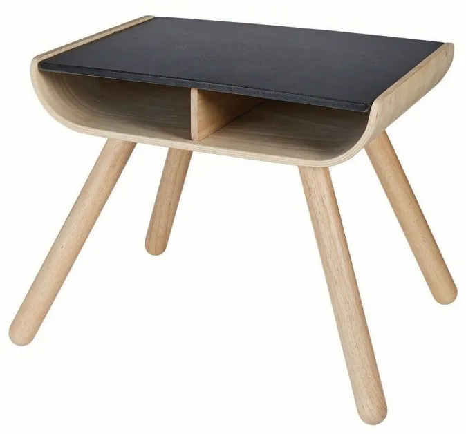 - Tisch: zwei Schubfächer, Tischplatte mit Kreide bemalbar, mit feuchtem Tuch abwischbar