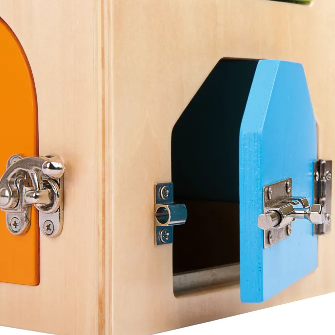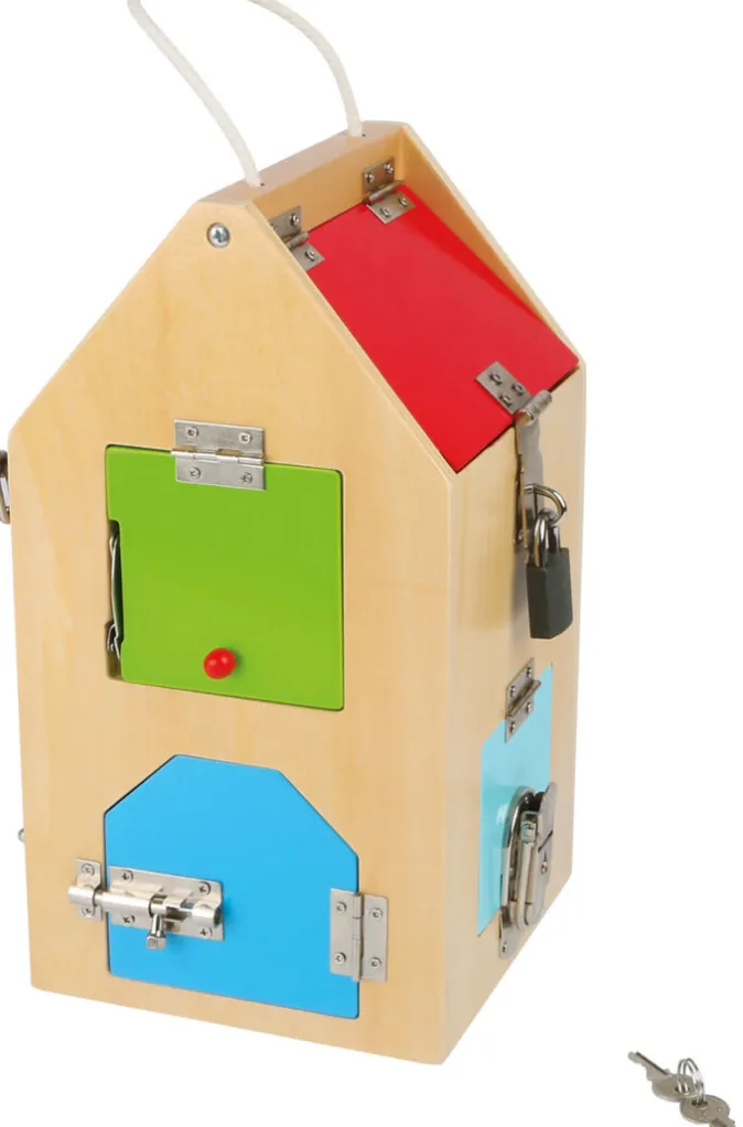 Das Motorikspielzeug „Schlosshaus“ von Small Foot ist das ideale Spielzeug, um die feinmotorischen Fähigkeiten von Kindern ab 3 Jahren gezielt zu trainieren. Das Schlosshaus erfordert das Greifen, Drehen und Öffnen von Schlössern, was die Fingerfertigkeit der Kinder auf spielerische Weise fördert.