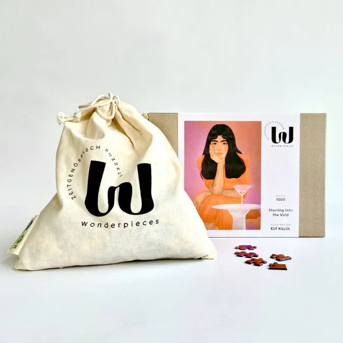 Tauchen Sie in die faszinierende Welt von »Staring into the Void« ein. Dieses einzigartige 1000-Teile-Puzzle der Künstlerin Elif Küçük fordert Geduld und Konzentration und bietet gleichzeitig ein ästhetisches, meditatives Erlebnis.