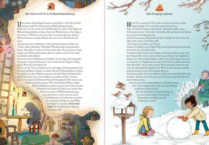 Im Winter freuen sich wie in jedem Jahr alle auf Weihnachten! Die Wichtel bereiten ein Weihnachtsfest vor, der Maulwurf bastelt die schönsten Geschenke, und der Nikolaus ist im Winterwald unterwegs. Dabei wartet die Mäusefamilie doch sehnsüchtig auf ihn! Die Eule schreibt ein Weihnachtsgedicht, die Waldtiere stimmen zusammen die schönsten Lieder an, und Opa Eichhörn schmückt zusammen mit den kleinen Hörnchen schon mal den Baum. Bei den Kindern werden Wunschzettel geschrieben und Überraschungen verpackt. Ob der Weihnachtsmann wohl bald kommt? Ja, bestimmt! Und dann feiern alle, alle Weihnachten!