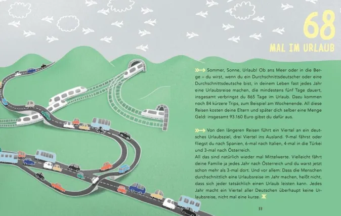 Lachen, Schlafen und Schokolade essen, das macht jede und jeder gern. Aber hast du dich schon mal gefragt, wie oft du in deinem ganzen Leben lachst? (511.000 Mal). Wie viel Zeit du mit Schlafen verbringst? (über 24 Jahre). Oder wie viele Tafeln Schokolade du verspeist? (7.296 Stück!) ((Zahlen ohne Klammern etwas größer und in anderer Farbe setzen))