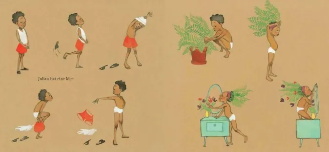 Julian liebt Meerjungfrauen – er wäre am liebsten selbst eine. Als er auf der Heimfahrt in der U-Bahn drei als Meerjungfrauen verkleidete Frauen mit farbenfroh aufgetürmten Haaren und schillernden Fischschwänzen sieht, ist der Junge völlig hingerissen. Auch zu Hause kann er an nichts anderes denken und verkleidet sich mit einem gelben Vorhang und Farnblättern selbst als Nixe. Und zum Glück hat er eine Großmutter, die ihn genauso akzeptiert, wie er ist! Dieses farbgewaltige Bilderbuch, das mit wenigen Worten auskommt, verströmt bei Lesen Wärme und wahre Freude. Mit zarter und doch überwältigender Bildsprache erobert Julian die Herzen seiner Leser im Sturm. Ein herausragendes Bilderbuch über Individualität, Diversität und Vielfalt!