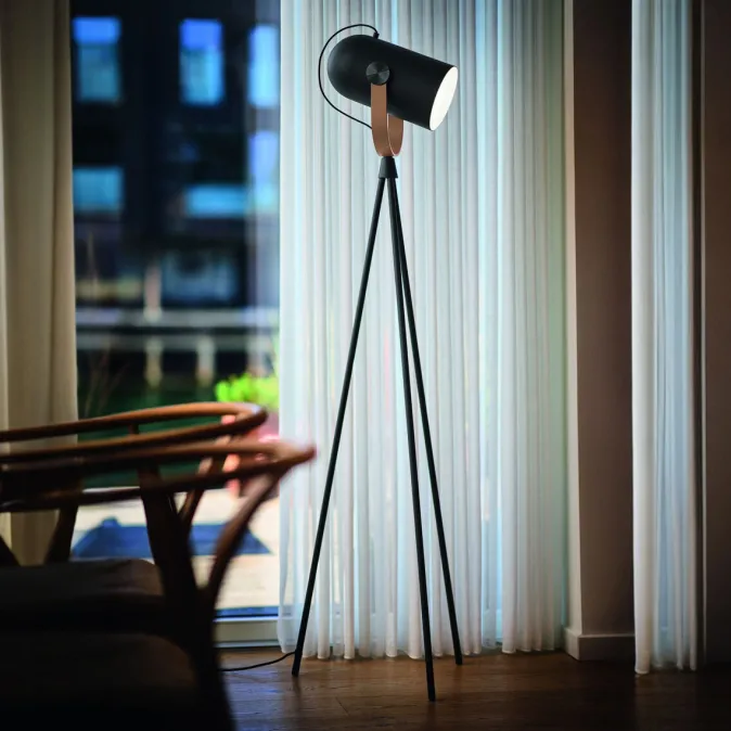 Die Stehlampe »Carronade II« erinnert an die Welt des Fernsehens und Films. Mit ihrem hohen Ständer und dem einzigartigen Erscheinungsbild wird sie schnell zum Mittelpunkt jedes Raumes. Die Carronade II ist nicht nur eine Lichtquelle, sondern auch eine eigenständige leuchtende Skulptur. Sie kann als traditionelle Stehlampe verwendet werden, wobei das Licht gezielt gelenkt werden kann, oder als stilvolles Statement, das die Blicke auf sich zieht.