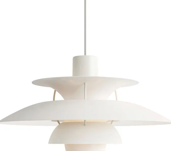 Weltberühmte Pendelleuchte des Pioniers des Lichtdesigns: 1958 entwarf Poul Henningsen die »PH 5«. Heute ist sie noch immer das meistverkaufte Werk des dänischen Unternehmens Louis Poulsen. Die monochrome Farbgebung lenkt den Blick auf den Formverlauf und verleiht der Leuchte einen grafischen, zeitgenössischen Look.