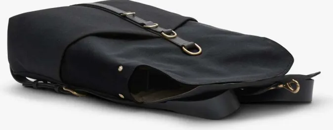 Eine Kombination aus schlanken Proportionen und Funktionalität. Dieser elegante und dynamische Begleiter erfüllt mit Stil alle Notwendigkeiten eines Tagesausflugs in die Stadt. Der Rucksack bietet viele Optionen für ein individuelles Styling – ein lässiger Look entsteht durch das Hochknöpfen aufgerollter Lederriemen und zusammenrollen der oberen Klappen. Durch biegen der Klappe nach unten und die Befestigung der Matrosenhaken an einem der vier D-Ringe auf der Vorderseite entsteht ein traditionellerer und sauberer Look. Der Rucksack verfügt über zwei tiefe und leicht zugängliche offene Außentaschen auf der Vorderseite und ein Außenfach mit Reißverschluss auf der Rückseite. Zeitschriften, ein iPad oder einen 11-Zoll-Laptop können hier ohne Probleme verstaut werden. Die Innenseite verfügt über ein gepolstertes Laptopfach auf der Rückseite und eine Ledertasche mit Reißverschluss auf der Vorderseite mit zwei offenen Einschubtaschen darunter. Wahlweise in den Farben Navy und Schwarz.