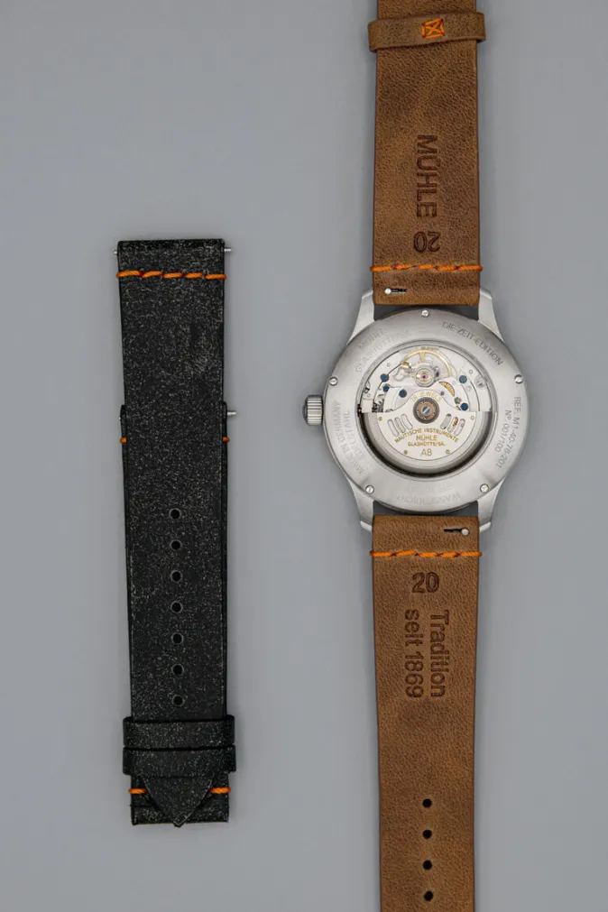 Damit auch unter dem Zifferblatt alles im grünen Bereich ist, besitzt die »Panova« ein bewährtes SW 200-1 in der Version Mühle. Dieses wird mit einem exklusiven Mühle-Rotor ausgestattet, auf dem auf Wunsch die Initialen (max 4 Zeichen) des Trägers graviert werden. Dazu kommt die besonders stoßsichere Spechthalsregulierung. Nach der sorgfältigen Veredelung und Montage der Werkteile wird das Uhrwerk zudem in sechs Lagen geprüft und so reguliert, dass seine Gangwerte zwischen 0 und +8 Sekunden/Tag liegen. Diese hauseigene Reguliervorgabe orientiert sich zum einen an der Chronometernorm, zum anderen soll so ein Nachgehen der Uhr vermieden werden. Denn kein Träger einer Mühle-Uhr soll aufgrund seiner Uhr zu spät kommen.