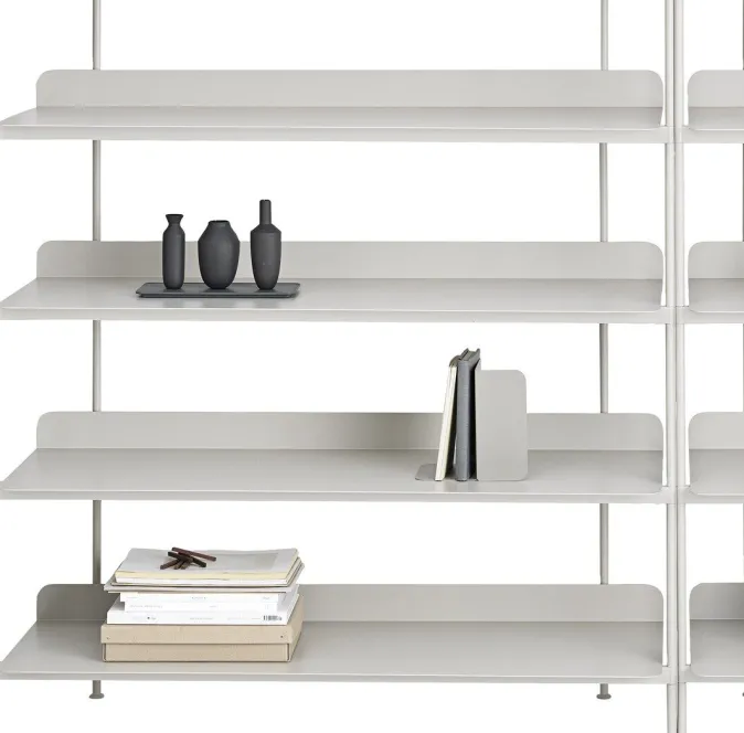 Die simple Buchstütze hält Magazine und Bücher, während sie dem Raum durch ihren skulpturalen Charakter einen besonderen Charme verleiht.