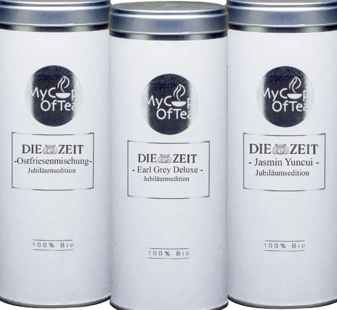 Anlässlich des 77-jährigen Jubiläums der ZEIT haben wir gemeinsam mit MyCupofTea ein exklusives Tee-Set zusammengestellt. Das Set besteht aus erstklassigem Jasmin-, Earl Grey- und Ostfriesentee und ist perfekt geeignet für einen wunderbaren Start in den Tag oder eine gemeinsame Tasse Tee mit Familie und Freunden.