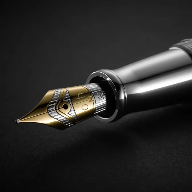 Das Besondere an der ZEIT-Sonderedition ist die Kombination zwischen der matten Lackierung und den hochwertigen mit glänzendem Platin beschichteten Metallteilen. Zusammen mit den exklusiv in diesem Modell im Kappenkopf eingravierten dezenten »ZEIT-Wappen« – ein absolutes Unikat.
