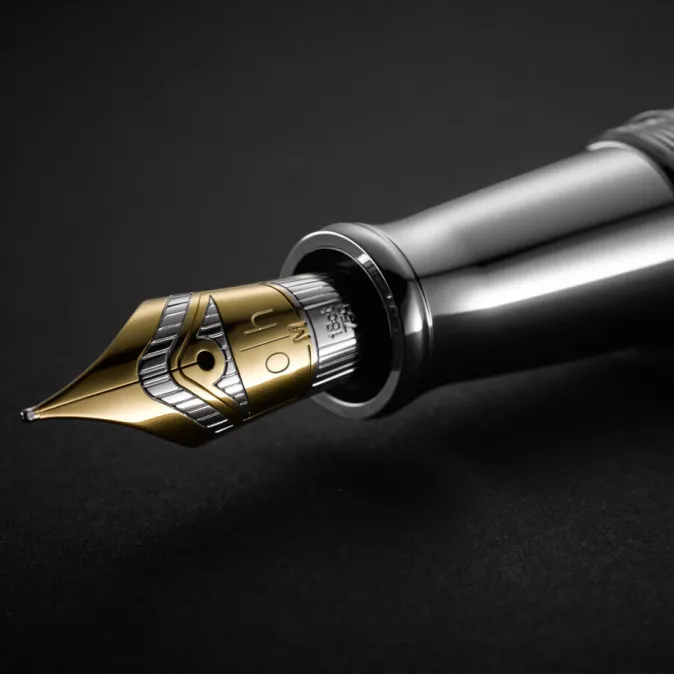 Die neue ZEIT Sonderedition »Design 04« in dunkelblau glänzend ist eine Huldigung an ästhetische Geradlinigkeit. Eine dezente Gestaltung, die kompromisslos ihrem Zweck untergeordnet ist. Kompakte Dimensionen sorgen bei diesem Füllfederhalter für eine bemerkenswerte Handhabung, die ihresgleichen sucht. Technische Raffinesse und hochwertigste Materialien zeichnen ihn aus. Basierend auf einem Originaldesign von Otto Hutt wurde die klassische Formgebung in die Zukunft weitergedacht und von Hand vollendet. Die Schafthülsen erhalten eine mehrfache Lackierung mit dunkelblauem Farblack und abschließend einen hochwertigen Glanzlack. Die Flächen werden anschließend aufwendig abgeschliffen und poliert, um eine gleichmäßige Oberfläche zu erzielen. Schaft und Kappe bestehen aus Messing-Vollmaterial, und der aufwendig gefertigte mechanische Federclip ist organisch geformt und perfekt in seiner Funktion. Auf Wunsch können Sie ohne Zusatzkosten Ihren Namen oder den Ihrer Liebsten auf den Federclip des Füllfederhalters gravieren (max. 22 Zeichen) in der Schriftart »Georgia«. Das Besondere an der ZEIT-Sonderedition ist das im Kappenkopf eingravierte, dezente »ZEIT-Wappen« – ein absolutes Unikat. Die Schreibgeräte-Manufaktur Die Manufaktur Otto Hutt Schreibgeräte wurde im Jahr 1920 in der berühmten Goldstadt Pforzheim gegründet. Alle Otto Hutt-Schreibgeräte werden damals wie heute mit Augenmerk auf Details und viel Sorgfalt aus Sterlingsilber, ausschließlich in Deutschland, hergestellt. In einem Umfeld von beliebigen Massenprodukten stellen sie etwas ganz Besonderes dar und werden von anspruchsvollen Kunden gesucht und ein Leben lang als Begleiter geschätzt. An der firmeneigenen Feder, mit eingraviertem Markenlogo, kann man den originalen Otto Hutt Füllfederhalter erkennen. Es handelt sich um eine hochwertige Stahlfeder mit einer wunderschönen bi-Color-Optik, die durch eine Platin- und Gold-Beschichtung entsteht. Ein besonders angenehmes Schreibgefühl garantiert der sanfte und kontinuierliche Tintenfluss. Somit wird jeder Brief, jede Signatur zu einem wahren Schreibvergnügen. Details: Material: Schaft und Kappe bestehen aus Messing-Vollmaterial Farbe: Dunkelgrün / Blau / Schwarz lackiert, Beschlagteile Platin beschichtet Maße: ca. 13,2 cm Gewicht Gewicht ca. 38,7 g Feder: Bicolor in Federstärke M Auf Wunsch mit Gravur auf Federclip in der Schriftart »Georgia« (max. 22 Zeichen) Lieferumfang: Geschenkbox, Manual, Zertifikat, Microfaser-Putztuch Jedem Füllfederhalter liegt zudem ein Converter bei, zur Verwendung von individueller Tinte.