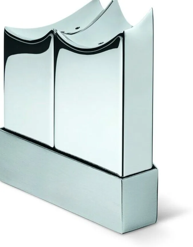 Die Streuer wirken einzeln betrachtet wie eine moderne Skulptur, platziert man sie zusammen in ihrem Tablett, ergeben sie eine Miniatur aufregend ähnlich der Elbphilharmonie®.