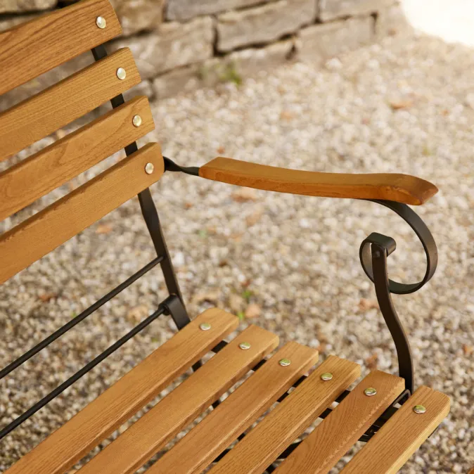 Das FSC®-zertifizierte Robinienholz ist besonders hart und robust und besticht mit seiner schönen Maserung, die der Holzbank einen ganz eigenen Charakter verleiht. Mit seinem robusten Stahlunterbau bietet die Gartenbank anhaltende Stabilität und zeigt Beständigkeit gegenüber den Elementen.