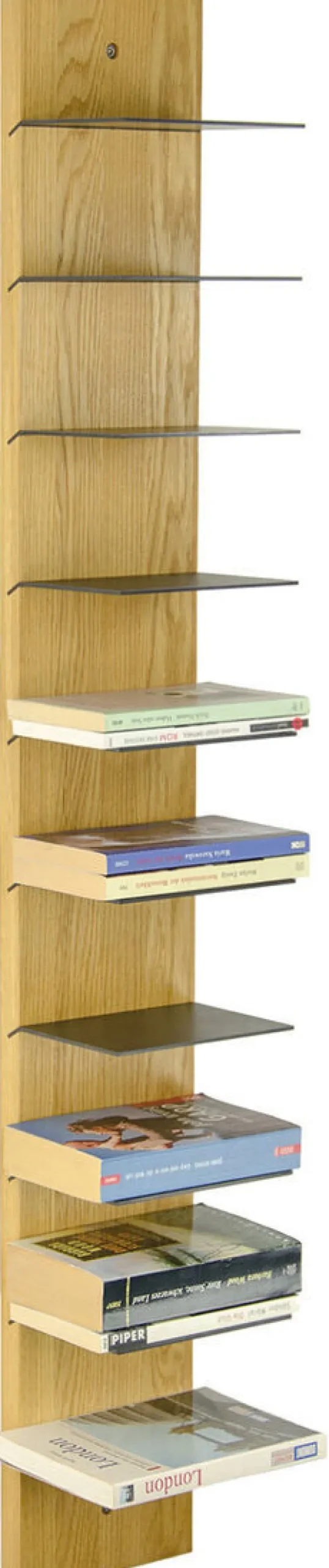 Das in Deutschland handgefertigte Wandregal »Scala« besticht durch seine Schlichtheit und Funktionalität. Die Einlegeböden sind aus geöltem Stahl und variabel einsetzbar: Sie können horizontal angebracht werden, dass Bücher und andere Accessoires optimal platziert werden, oder ebenfalls leicht schräg, sodass die Einlegeböden den optimalen Halt für Ihre Magazine oder Zeitschriften bieten.