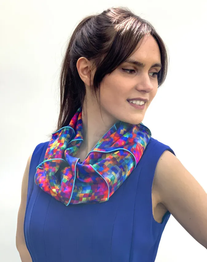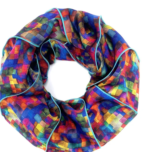 Der luftig leichte Loopschal aus Seidensatin ist eine exklusive ZEIT-Jubiläumsedition und mit einem abstraktem Mosaik in schönen warmen Regenbogenfarben bedruckt. Durch das helle und einzigartige Design eignet er sich bestens als Geschenk für begeisterte Modefans und passt perfekt zu sonnigen Frühlings- oder Sommertagen.