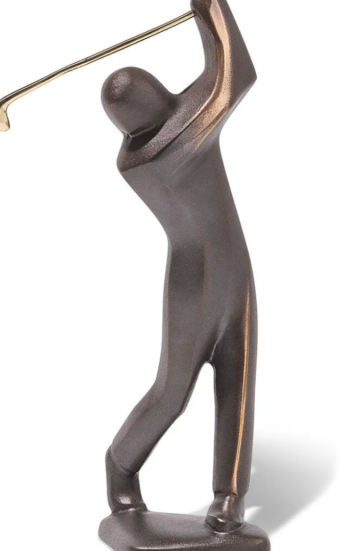 Der Golfsport hat weltweit schätzungsweise 50 Millionen Anhänger. Die Künstlerin Jutta Römhild hat die Eleganz und Faszination dieser Ballsportart in einer Skulptur eingefangen, die jeden Golffreund erfreuen wird und sich ebenfalls als besondere Trophäe für Turniere und Meisterschaften eignet. Im zeitgenössischen Stil vereint die Skulptur Kunsthandwerk in höchster Qualität und erlesene Optik.