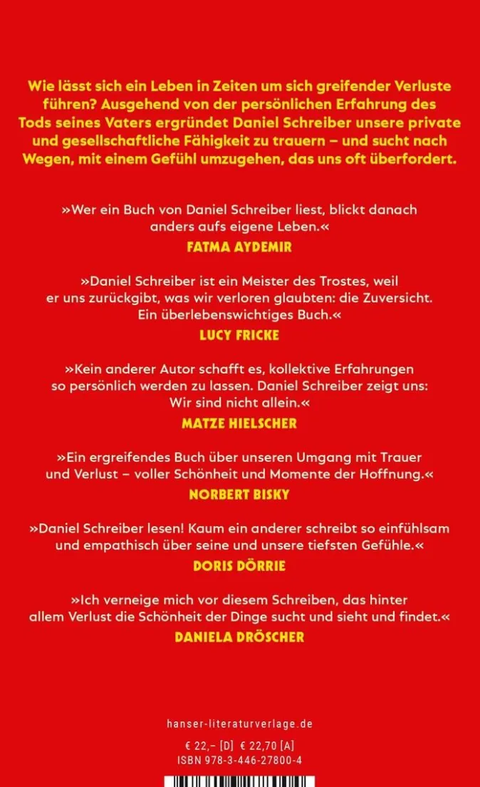 Nach seinem Bestseller „Allein“ geht Daniel Schreiber nun der Frage nach: Wie lässt sich ein Leben in Zeiten um sich greifender Verluste führen? Nichts möchten wir lieber ausblenden als die Unbeständigkeit der Welt. Dennoch werden wir immer wieder damit konfrontiert. Wie gehen wir um mit dem Bewusstsein, dass etwas unwiederbringlich verloren ist? In seinem neuen Essay nimmt Daniel Schreiber so hellsichtig und wahrhaftig, wie nur er es kann, eine zentrale menschliche Erfahrung in den Blick, die unsere Gegenwart maßgeblich prägt und uns wie kaum eine andere an unsere Grenzen bringt: den Verlust von Gewissheiten und lange unumstößlich wirkenden Sicherheiten. Ausgehend von der persönlichen Erfahrung des Todes seines Vaters erzählt Daniel Schreiber von einem Tag im nebelumhüllten Venedig und analysiert dabei unsere private und gesellschaftliche Fähigkeit zu trauern – und sucht nach Wegen, mit einem Gefühl umzugehen, das uns oft überfordert.