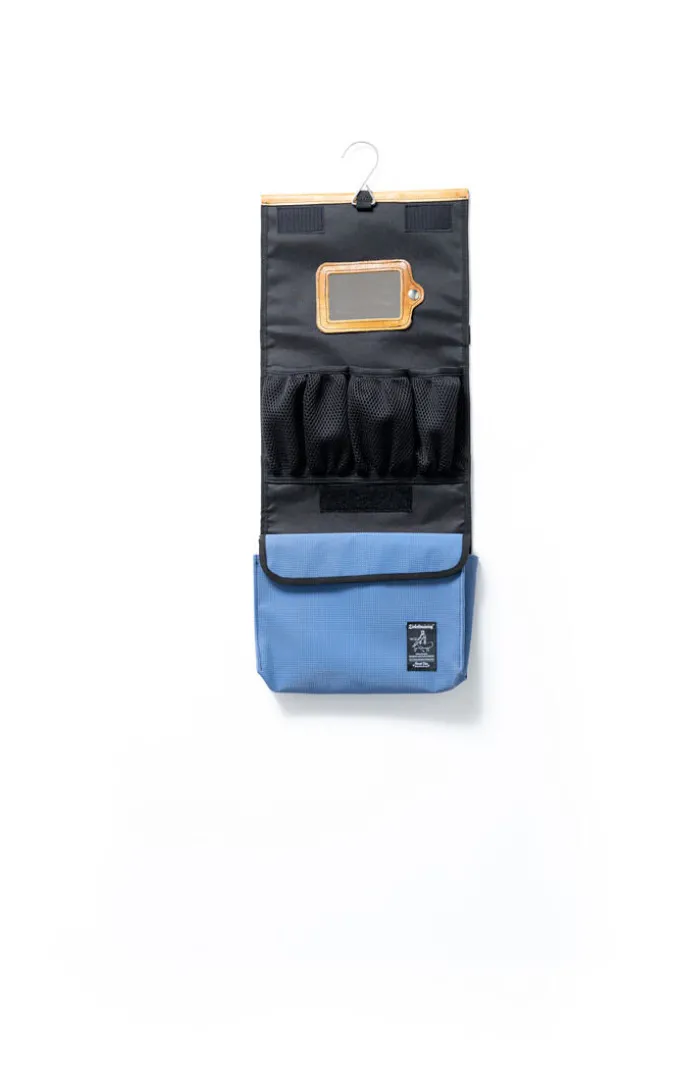Wer viel unterwegs ist und auswärts nächtigt, sollte nicht nur auf nachhaltige Pfegeprodukte setzen, sondern sich auch für ein Behältnis mit Upcycling-Anteil und Mythos Turnstunde entscheiden. Hiermit macht ihr in jeder Sammelumkleide auf Euch aufmerksam – rollbare bzw. einklappbare Kulturtasche aus gebrauchtem Sportgeräte-Leder und recycelter Turnmatte mit Front aus LKW-Plane. Das Innenfach ist mit schwarzem Nylon gefüttert und weist mehrere kleine Fächer auf. Diese KulturRolle L hat gegenüber der M noch ein extra „Abteil“ = ein großes Staufach mit Zip. Zusätzlich hat die »KulturRolle« einen Spiegel (hochglanzpolierter Edelstahl) und einen Haken zum Aufhängen.